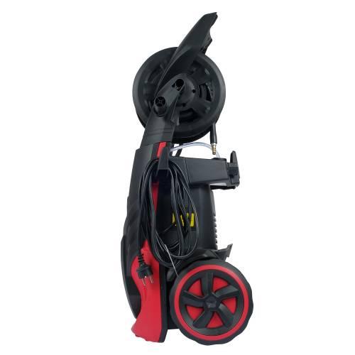 Блокнасос-двигательпомещен в прочный пластмассовый корпус, имеющий ручку для переноски, катушку для сматывания шланга высокого давления, крепления для пистолета, шлангов и кабеля электропитания. Длина шланга высокого давления увеличена до 7 метров для удобства мойки больших объектов. Обрезиненные транспортировочные колеса уменьшают вибрацию, передаваемую на корпус аппарата при транспортировке. Также в корпус встроены переключатель режимов работы и регулятор подачи жидкого моющего средства.