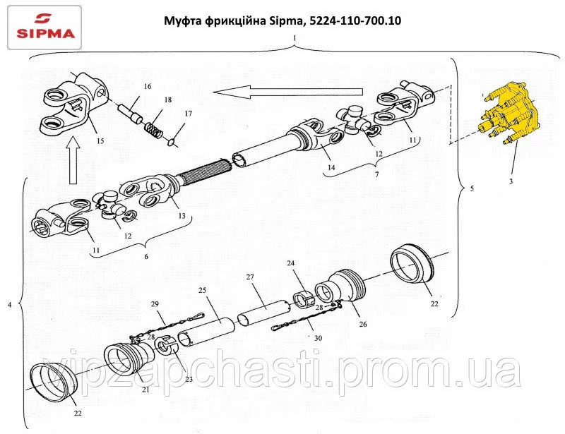 5 5224-110-720.20 Joint with outer welded shaft and guard cpl. (pos. 7+22+24+26+27+28+30) 1 1