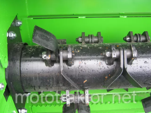 Производитель Leopard использует Y-образные ножи, но есть возможность применять и другие виды ножей, например молотки (крупнее перебивает). Мульчирователь работает от ВОМа трактора. Благодаря специальным муфтам, полностью исключается повреждение агрегата, даже при полной блокировке вала отбора.