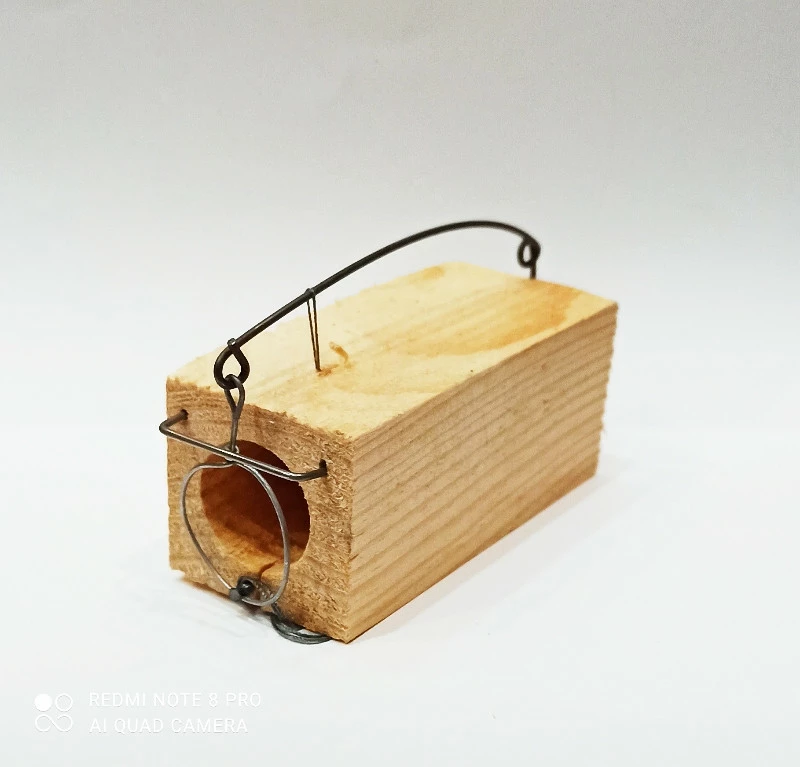 Мышь для того, чтобы пробраться к лакомству, расположенному на дне выфрезированной в деревянном бруске норки, пролазит через кольцо-удавку, которое срабатывает после того, как будет перегрызена ниточка, преграждающая  добычу. После срабатывания мышь оказывается в западне и погибает, после чего вам необходимо перезарядить мышеловку.