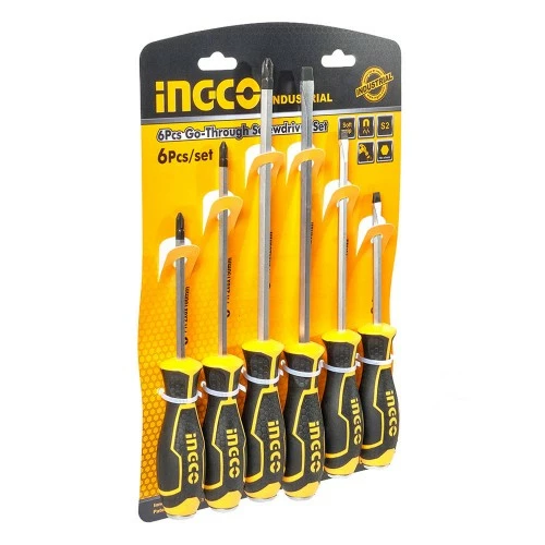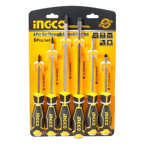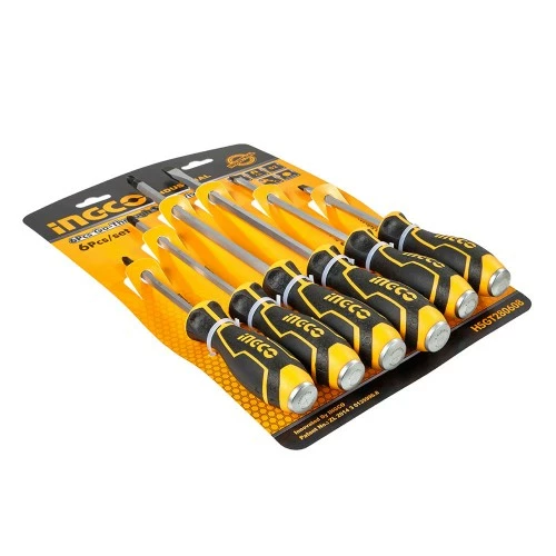 Набір ударних викруток 6 шт INGCO INDUSTRIAL містить в комплекті три викрутки з прямим шліцом і три викрутки з хрестовим.
