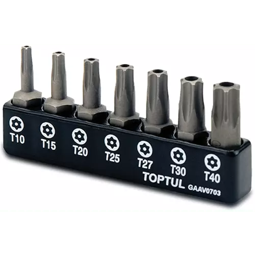 Набор бит TORX с отверстием TOPTUL 1/4" 7ед. (T10-T40) GAAV0703