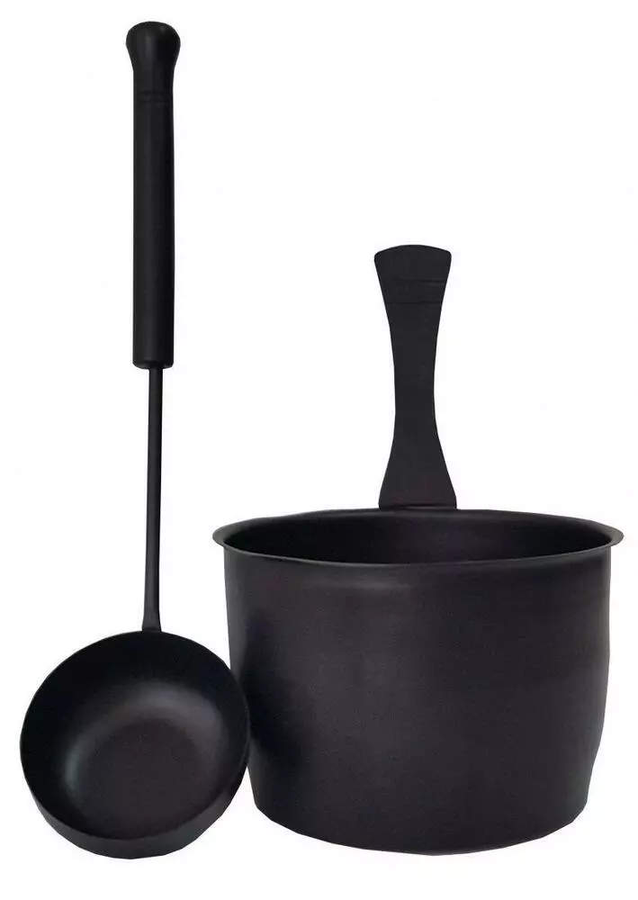 Набор «Черный лакированный бук» (шайка 4 л + черпак 43 см)