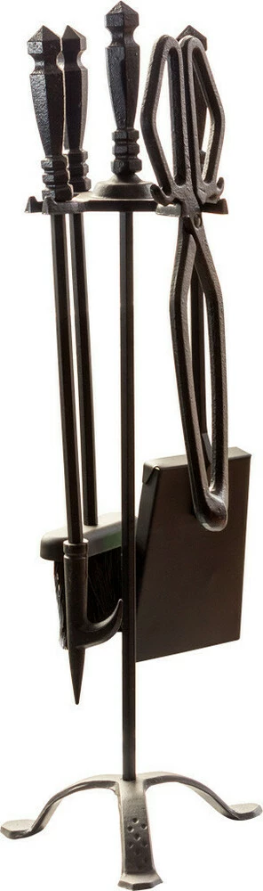 Набор для камина №2 Стандартный каминный набор включает в себя кочергу, щипцы, совок для сажи и метелку. Все элементы имеют удобную ручку, за которую они подвешиваются на сервитер.
