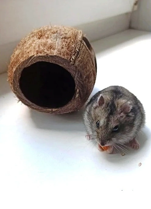 Стартовый набор для приучения хомяка к туалету. В комплекте домик для хомяка из кокоса и наполнитель для туалета, который поглощает влагу и запах. Наполнитель насыпают на дно домика и меняют по мере необходимости. Хомяк быстро привыкает к туалету, и уход за клеткой существенно упрощается.