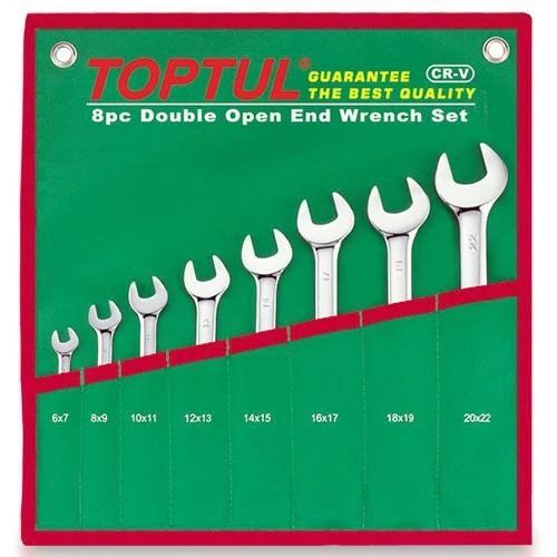 Набор ключей рожковых 6-22 мм TOPTUL 8 шт. GAAA0812 - 6х7, 8х9, 10х11, 12х13, 14х15, 16х17, 18х19, 20х22 в зеленом чехле
