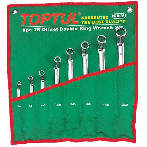 Набор накидных ключей TOPTUL 6-22мм (угол 75°) 8ед. GAAA0810 - 6х7, 8х9, 10х11, 12х13, 14х15, 16х17, 18х19, 20х22мм в зеленом чехле