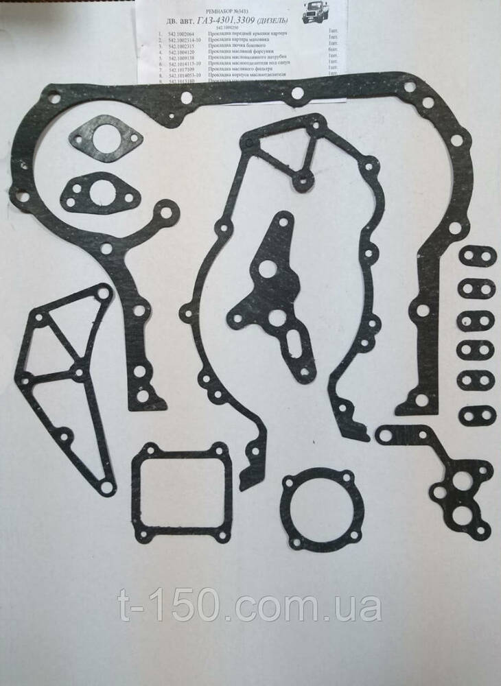1. Набор прокладок двиг. ГАЗ-4301/3309 дизель малый, паронит -1шт