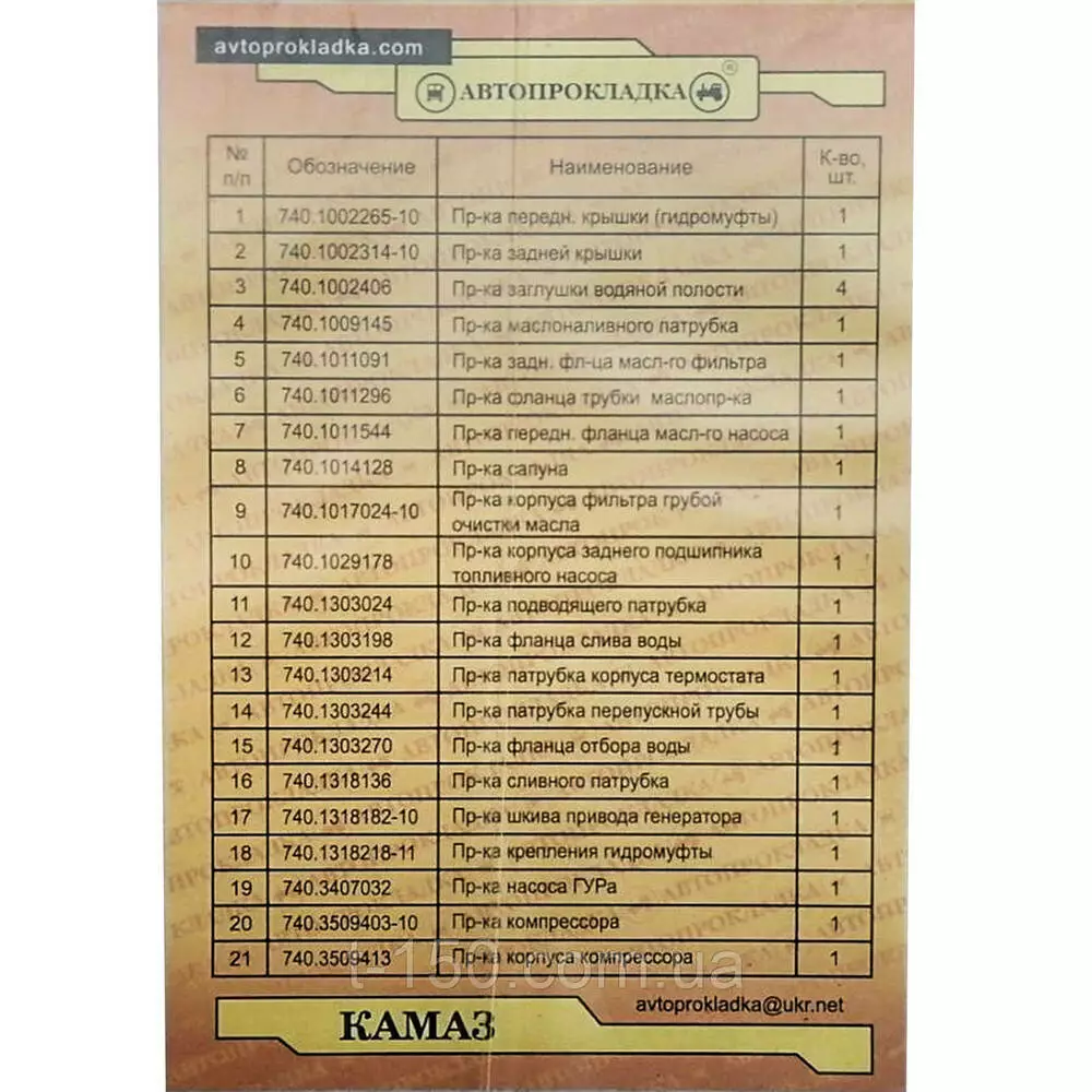 Набор прокладок двигателя КамАЗ полный с РТІ силикон