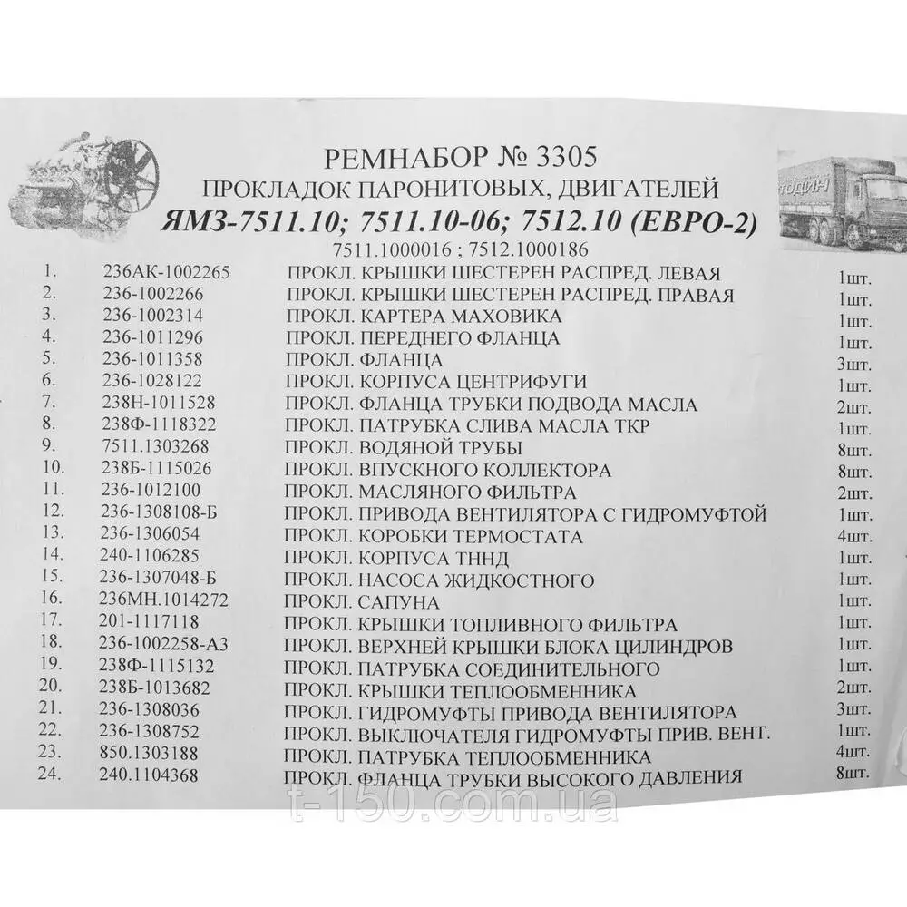 Набор прокладок двигателя ЯМЗ-7511 малый, паронит