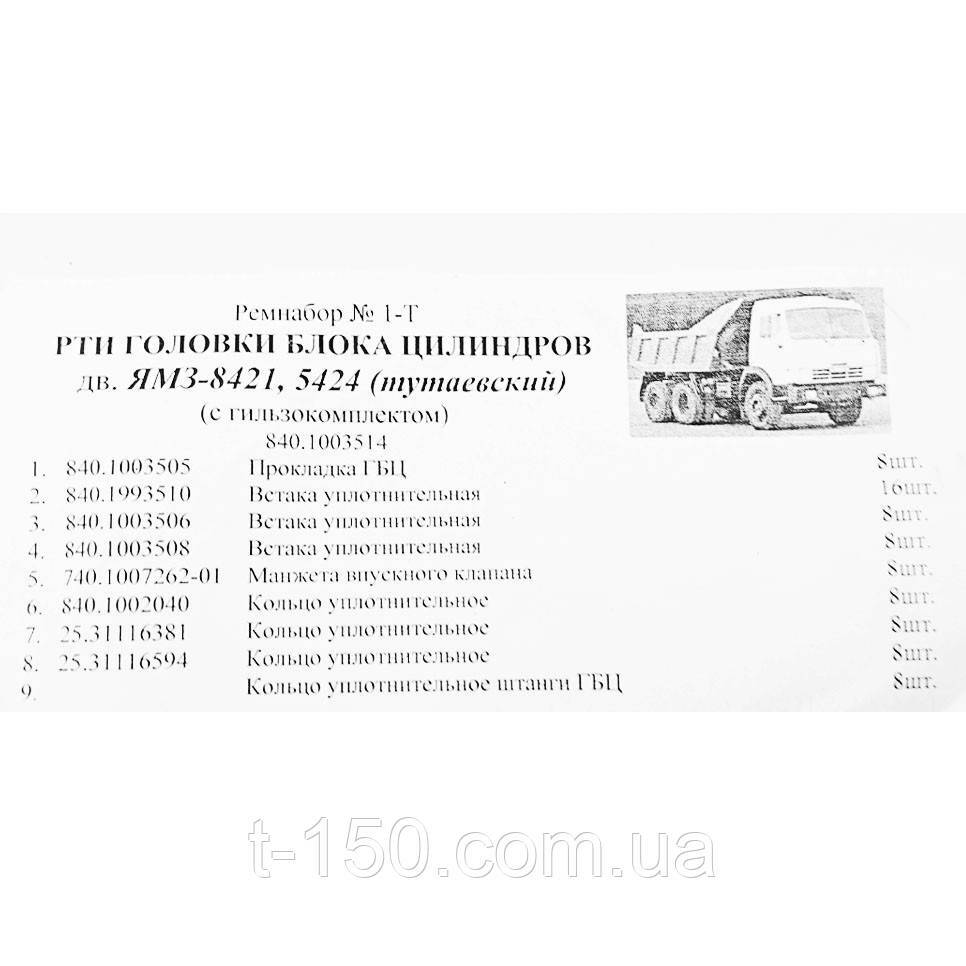 Набор прокладок ГБЦ РТИ ЯМЗ-8421/8424/8510 Тутаевский, резина, 840.1003514