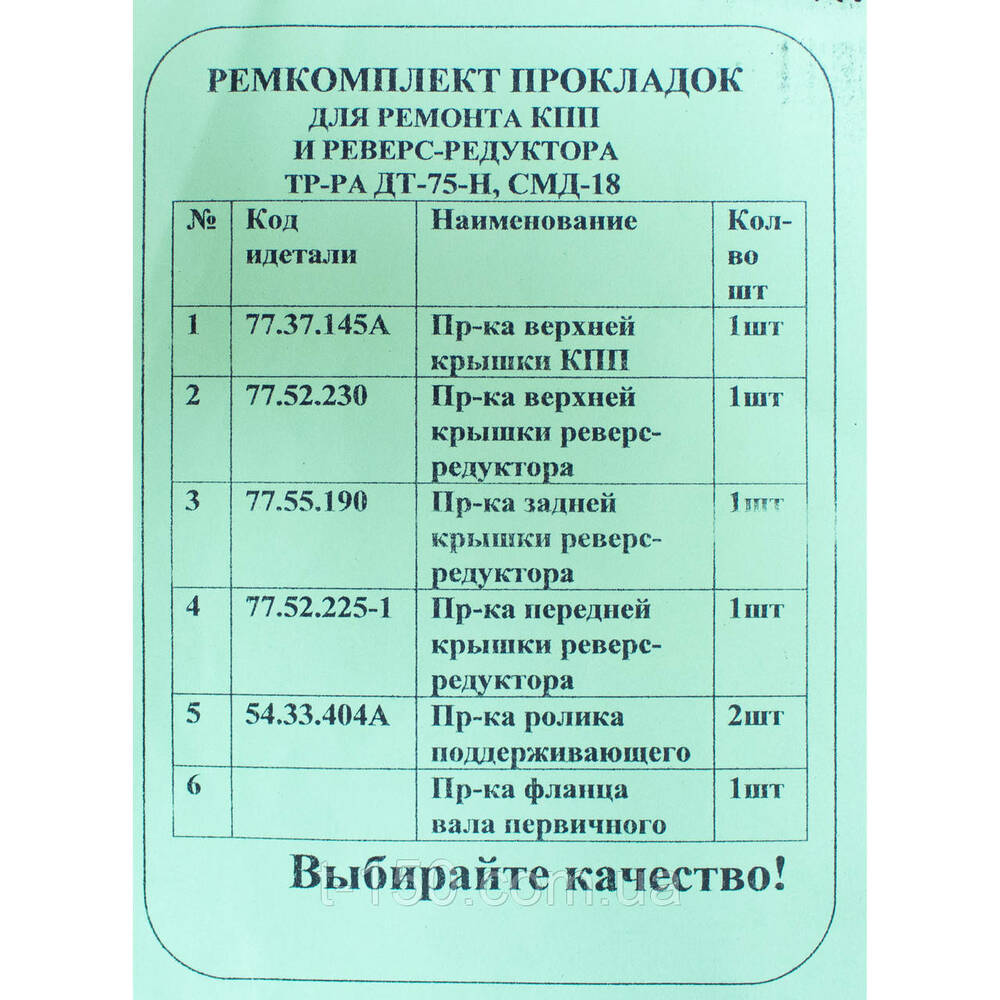 Набор прокладок КПП и реверс-редуктора ДТ-75 СМД-18-22, картон