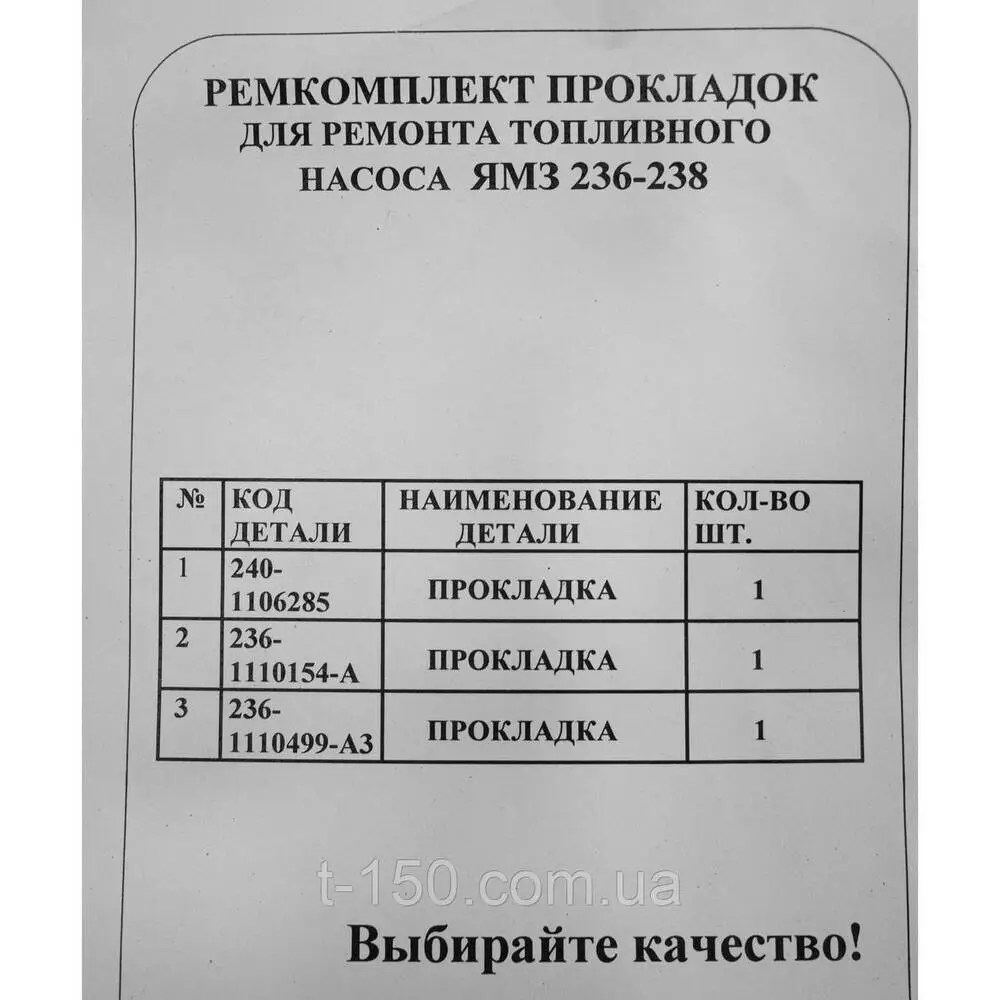 Набор прокладок ТНВД ЯМЗ-236/238 Т-150 мАз, паронит