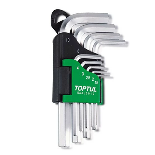 Набор шестигранников Г-обр. TOPTUL 1,5-10мм 9ед. GAAL0910 - 1.5, 2, 2.5, 3, 4, 5, 6, 8, 10 мм, изготовленных из хромванадиевой легированной стали.