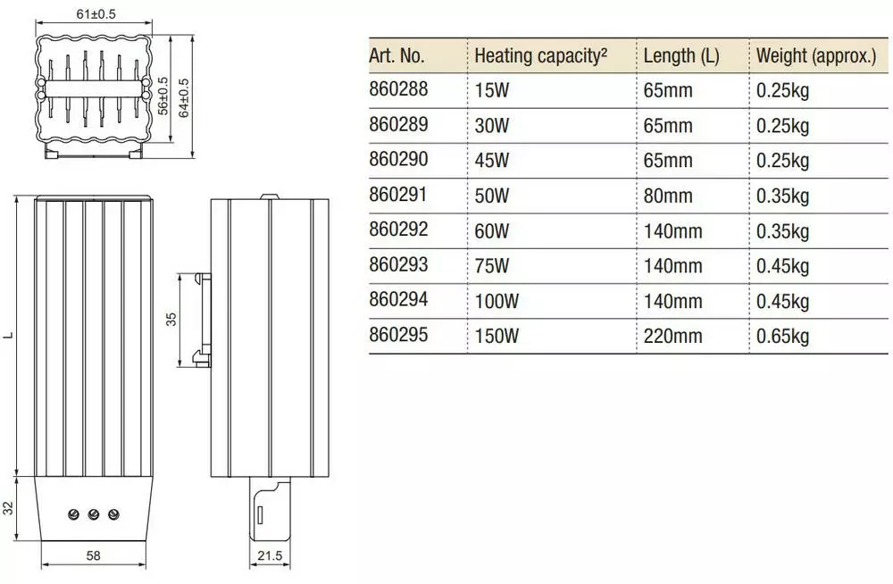 Эти нагреватели используются в корпусах, где необходимо предотвратить повреждение от конденсации или где температура не может упасть ниже минимального значения. Конструкция корпуса нагревателя из алюминиевого профиля имеет дымоходный эффект и равномерно распределяет тепло. Обогреватели предназначены для постоянной эксплуатации. Соединительные зажимы экономят время и упрощают монтаж