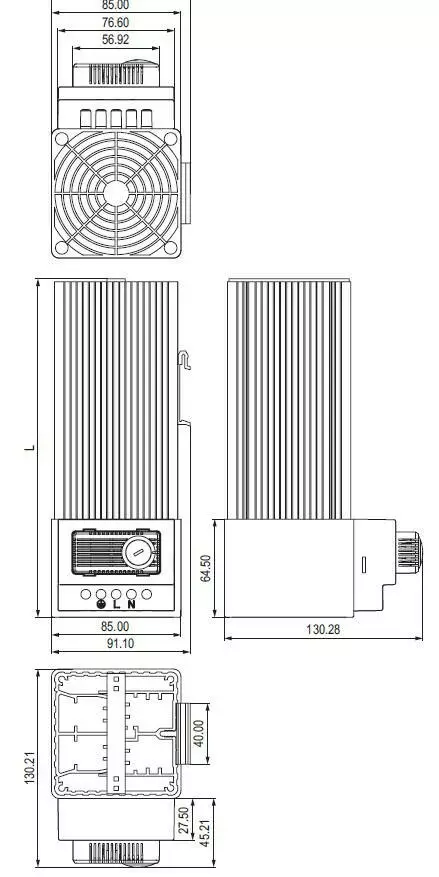 Нагреватель NTL522-T-100W монтируется на стандартную DIN-рейку 35 мм.