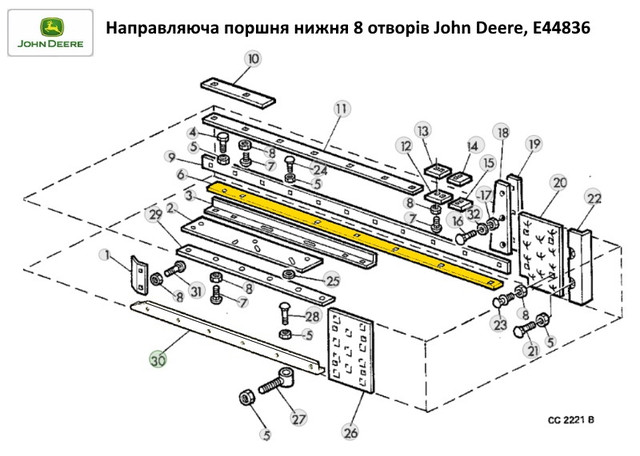 Направляюча поршня нижня 8 отворів John Deere, Е44836