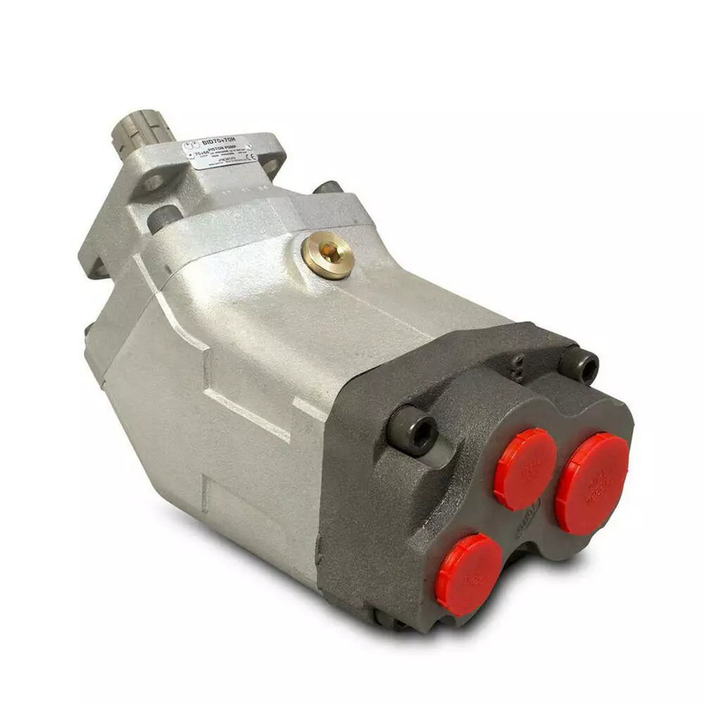 Нерегулируемый двухпоточный аксиально-поршневой насос с наклонным блоком Aber BID70+70H левого вращения (CCW). Рабочий объем составляет 70 + 66 куб. см. Рассчитан на работу при номинальном давлении до 300 бар.