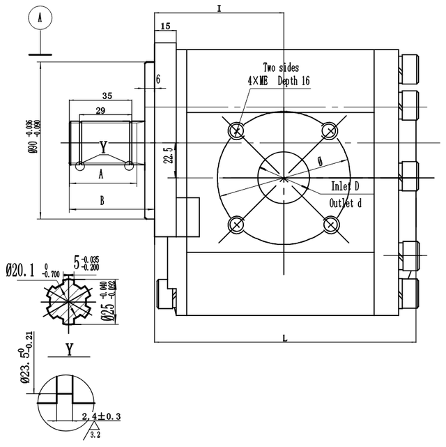 | I | L | A | B | Inlet D | Outlet d | ø | ME |