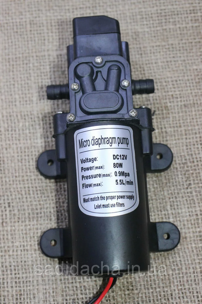Мембранный водяной насос высокого давления 12 вольт 80 ватт, с датчиком давления. Создает давление на выходе.