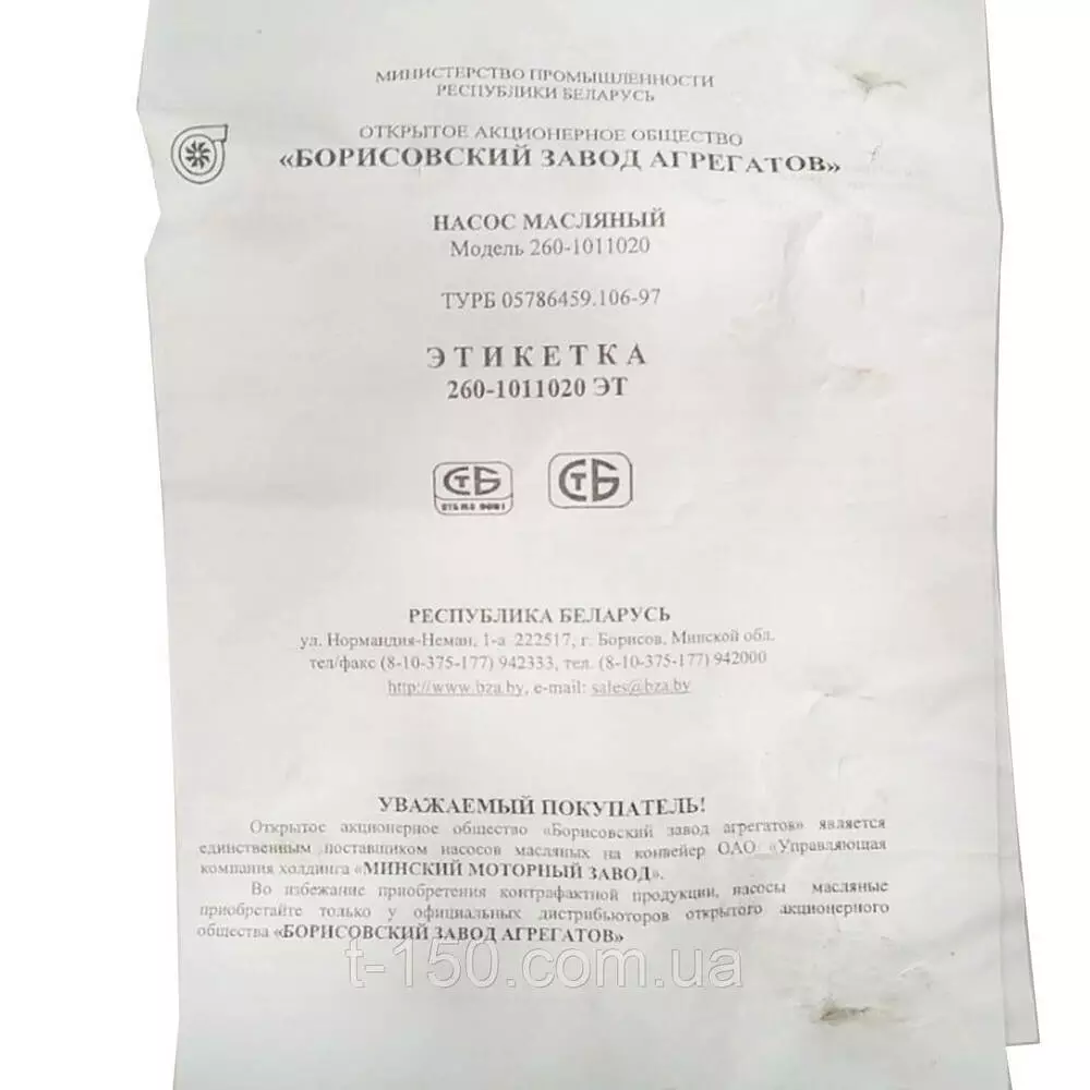 Насос масляный МТЗ-1221/1523/2022/2122З Д-260, 36 зуб, 260-1011020