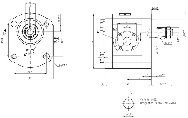 Шестеренный (шестерной) гидравлический насос Hydro-pack 20C16X007 серии 20 отлично взаимодействует со всеми видами смазывающих жидкостей и подойдет для установки на различные виды специальной техники, среди которых коммунальная, с/х, строительно-дорожная.