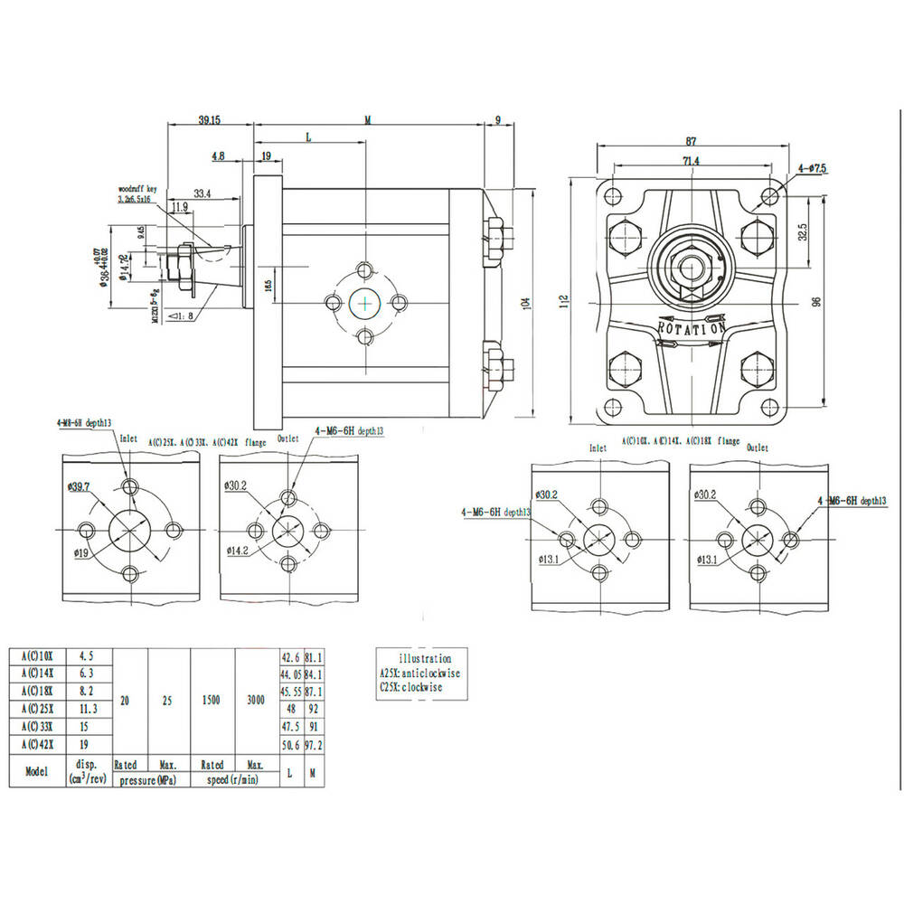 Гидравлический шестеренный насос Hydro-pack A33X группы 2, с объемом 15 см3/об, имеет левое вращение (против часовой стрелки). Подходит к тракторам FIAT: