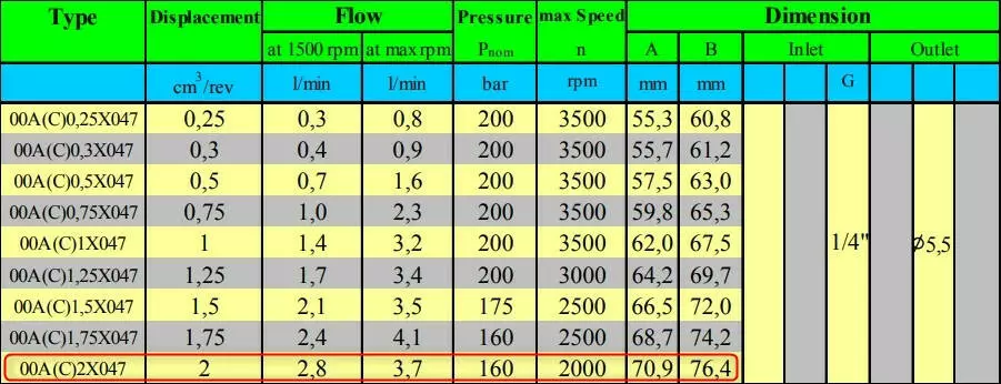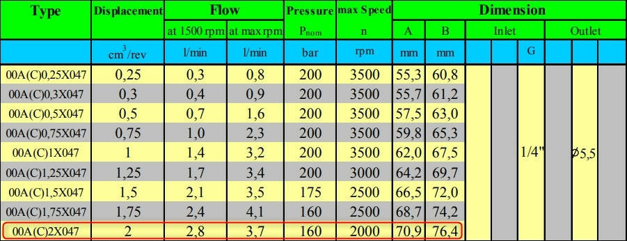 Гидравлический шестеренный насос Hydro-pack 00C2,0X047 группы 00, с производительностью 2 см3/об, имеет правое вращение (по часовой стрелке) и работает при постоянном давлении 160 бар. Широко применяются в промышленной гидравлике, а также устанавливаются на гидроборты, они обеспечивают сравнительно высокие давления и небольшие расходы, отличаются стабильностью характеристик и высокой долговечностью.