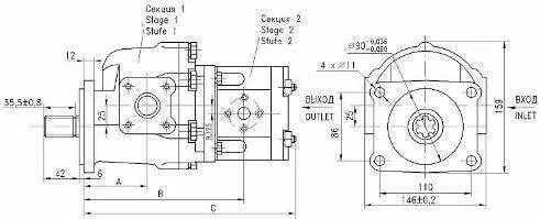 Насос предназначен для подачи рабочей жидкости (минеральное масло) в исполнительные органы гидросистем тракторов, автомобилей и других машин. Применяются в гидросистемах с несколькими (по числу секций) исполнительными органами. Частота вращения приводного вала определяется по секции с минимальной частотой вращения.