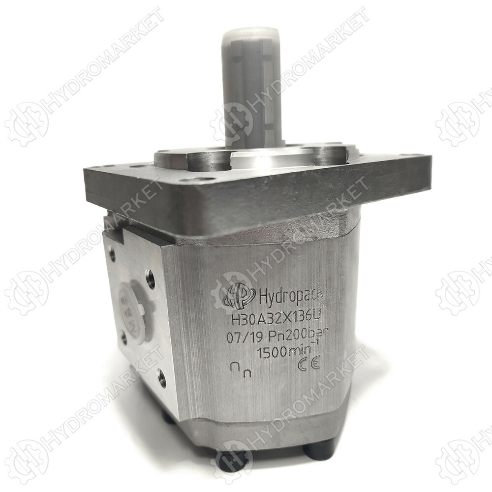 Насос шестеренный НШ32 (правый) Hydro-Pack с креплением на 3 болта подойдет для установки на различные виды специальной техники, такие как полу- и прицеп, самосвал, асфальтоукладчик и другие авто.