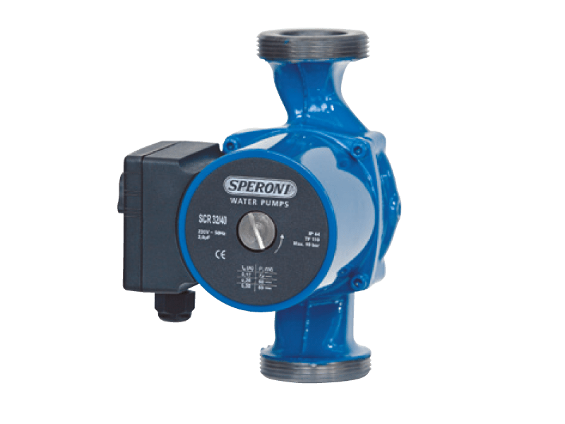 Speroni SCR - трехскоростные циркуляционные насосы с «мокрым ротором» серии SCR предназначены для работы в системах отопления и охлаждения, кондиционирования воздуха, в промышленных циркуляционных установках. В применении циркуляционные насосы удобны тем, что в зависимости от потребности с помощью простого и удобного переключателя можно установить необходимую частоту вращения вала двигателя.