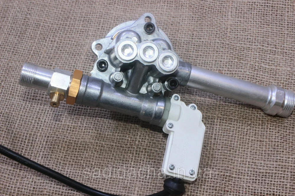 Головка насоса высокого давления с датчиком давления для мойки в сборе. Этот тип насоса устанавливается в современных мини-мойках и подходит к любой мойке при соответствии размеров.