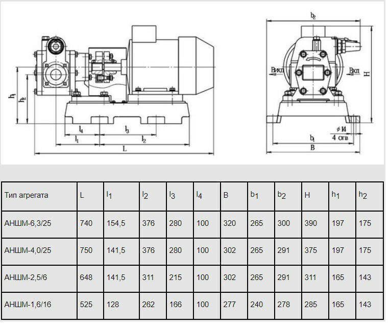 Насосные агрегаты типа АНШМ предназначены для перекачки нефтепродуктов (масло, нефть, мазут), а также для подачи мазута в котельных установках, без механических примесей с кинематической вязкостью 75мм2/С(ССТ) ... 1800 мм2/с (сСт) (10°ВУ...250°ВУ). Температура рабочей жидкости от 10 °С до 70 °С.
