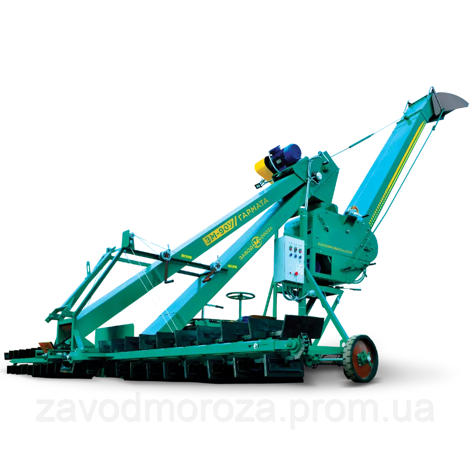 З огляду на споживчий попит, на Заводі Мороза розробили зерномет, здатний завантажувати за годину 90 тонн сипучих матеріалів у зерновози будь-якої висоти чи складські приміщення. Високу продуктивність машини та дальність метання зерна забезпечує транспортерна стрічка з шевроном, а підвищену маневреність та стійкість – збільшені колеса діаметром 500 мм та подвійний передній хід.