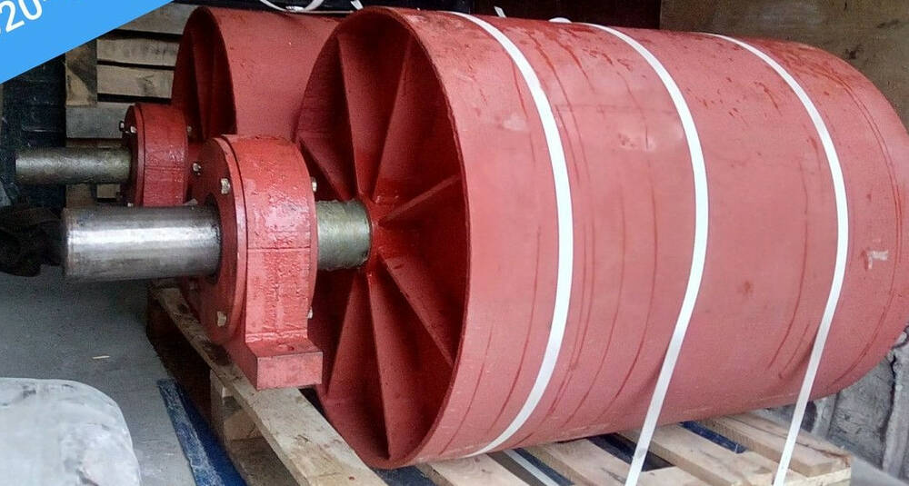 Барабан неприводной предназначен для увеличения силы сцепления приводного барабана с лентой, для изменения направления движения ленты в горизонтально-наклонных конвейерах, а также при наличии вертикальных и тележечный натяжных устройств.