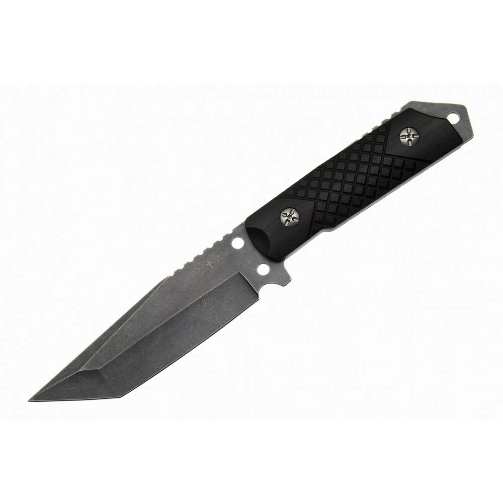 • Рукоять – фултанг з накладками із міцного та стійкого до впливу середовища композиту G10. Сталевий хвостовик, що йде на всю довжину рукояті, гарантує міцність ножа. Виріз та упор під пальці підвищують надійність хвата. Текстурована G10 відома тим, що не ковзає та добре чіпляється за долоню. Рукоять навмисно зроблена не надто товстою, щоб спростити носіння ножа. Як уже було вказано вище, поєднання міцності та компактності – одна з «фішок» цього ножа.