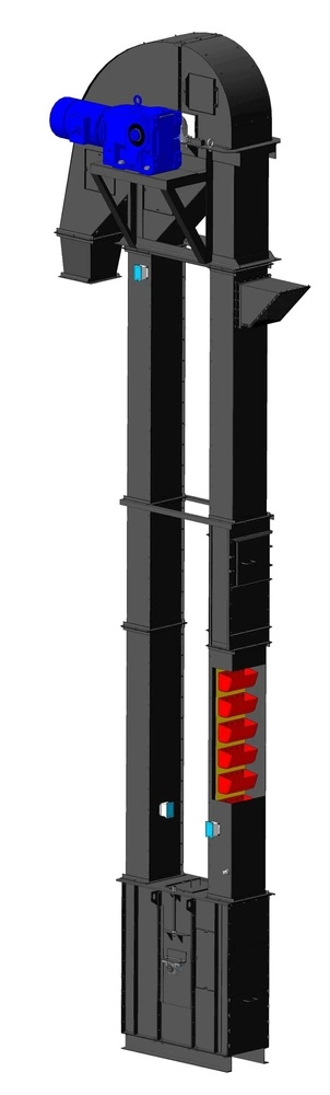 Нория предназначена для транспортировки продукта на высоту до 80 м и производительностью(по пшенице) от 0,5 т/ч до 500 т/ч.