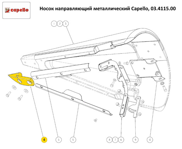1 03.4113.00 . . . . . . . капот носка 700мм (запчасти на жатку Capello)