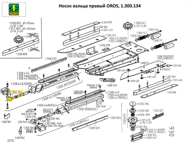 1.328.441 . . . . . . . валец правый в сборе (кукурузная жатка OROS)