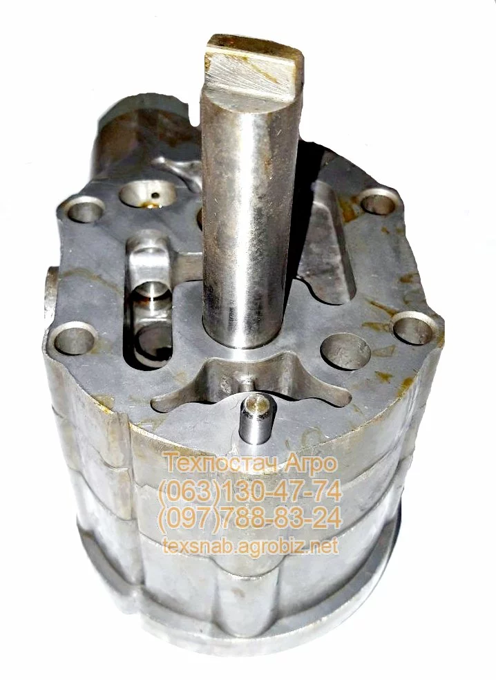 Вал привода приводит во вращение шестерни в корпусе насоса.   Шестерни вращаясь в корпусе, всасывают рабочую жидкость из точки подсоединения всасывающей линии S гидросистемы объекта применения.