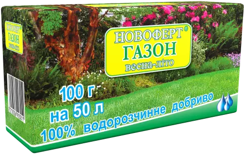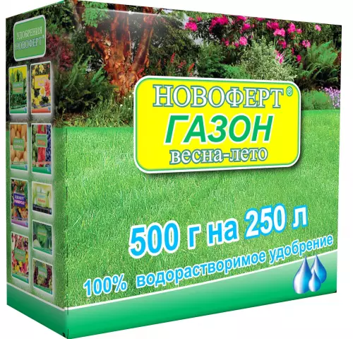 Удобрение НОВОФЕРТ «ГАЗОН» (весна-лето) гарантирует быстрый начальный рост и восстановление газонной травы после зимнего периода. Высокое содержание азота и хелата железа обеспечивает яркий насыщенный цвет, свежесть, упругость и быстрое восстановление после стрижки. Сбалансированная формула удобрения поддерживает равновесие между ростом зеленой массы и формированием корневой системы.