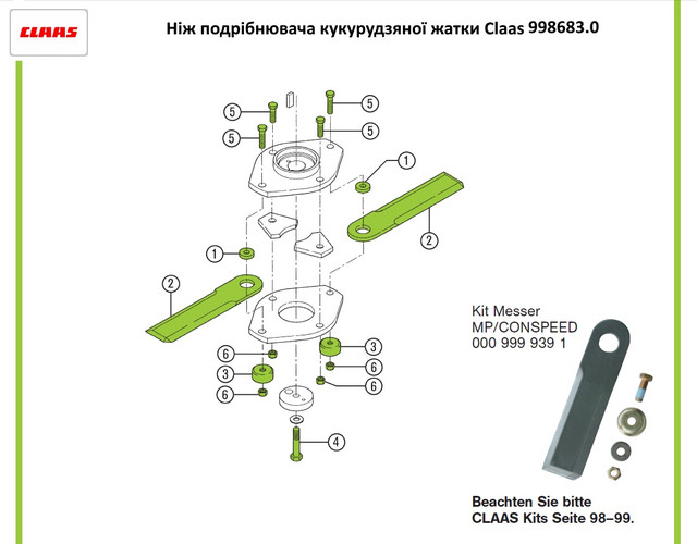 000 998 683 0 нож измельчителя кукурузной жатки Claas LEXION, MEGA, MEDION, DOMINATOR