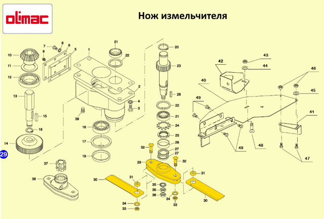 Ніж подрібнювача в зборі жатки Olimac Drago