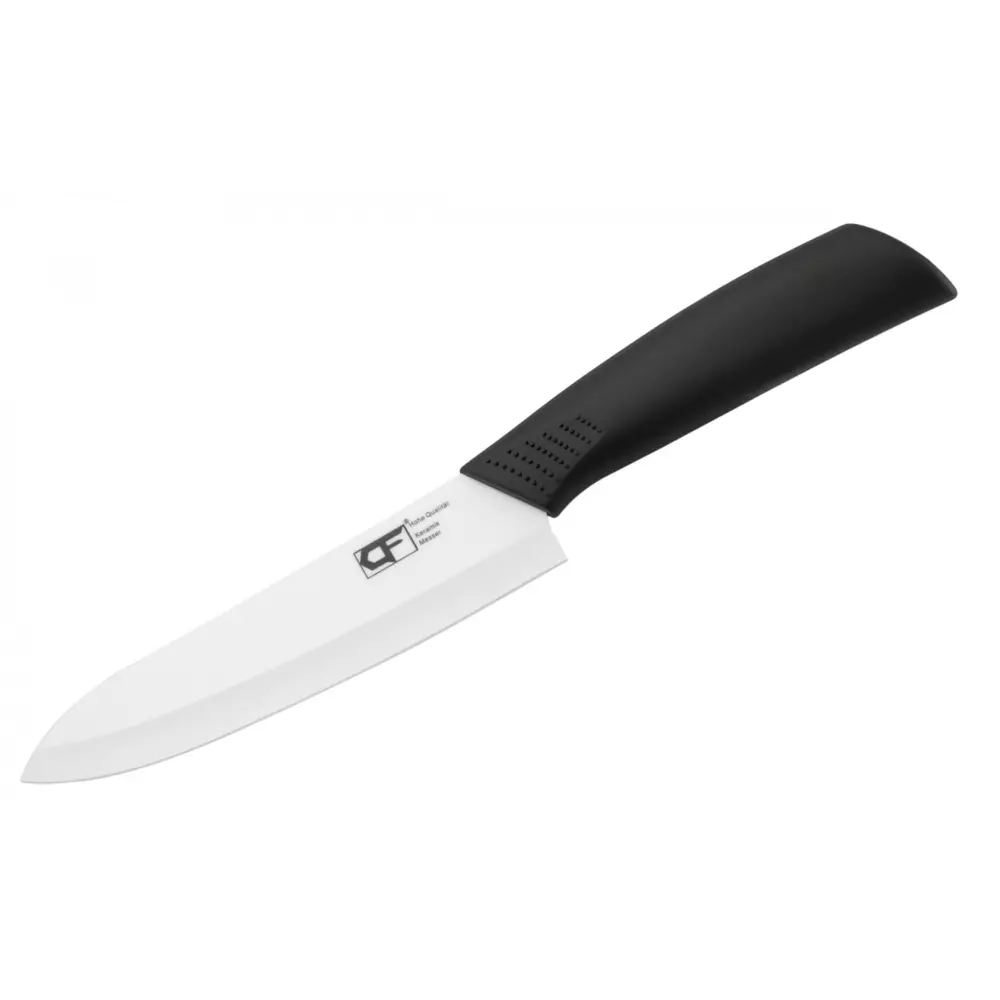 Представленная модель является маленьким ножом шеф повара. Не слишком длинное лезвие достаточно подвижно и одновременно достаточно длинное для нарезки основных продуктов, хлеба, овощей и фруктов. Современная керамика по твердости превосходит любую сталь и крайне износоустойчива, но достаточно хрупка, поэтому таким ножам нужно особое обращение. Резать нужно обязательно на доске, не резать замороженные продукты и кости. Но вот с мягкими материалами такой нож может работать без заточки годами. Мясо, филе рыбы, овощи и фрукты будут резаться легко и долго. Особенно хорошо такие ножи проявляют себя при приготовлении блюд восточной кухни. Керамический нож очень легкий, к нему плохо прилипают продукты, он очень острый и химически стойкий. Керамический клинок никогда не заржавеет и не изменит вкус продуктов. Если использовать этот нож по назначению и аккуратно с ним обращаться, то о заточке подобного ножа можно не думать много лет. Рукоять этого ножа изготовлена из нескользящей синтетики, прекрасно лежит в руке и не имеет щелей, куда могла бы забиться грязь. Как бонус, обратите внимание на то, что об обух керамического ножа можно прекрасно править стальные ножи!