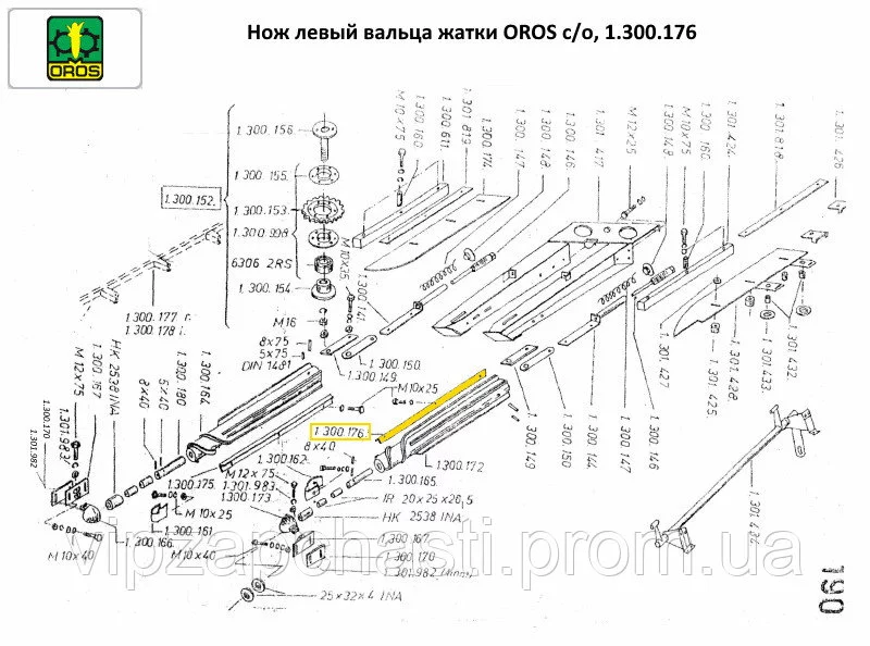 Нож левый вальца жатки 560мм OROS с/о, 1.300.176