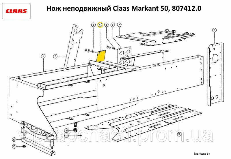 Нож неподвижный на пресс-подборщик Claas Markant, 807412.0