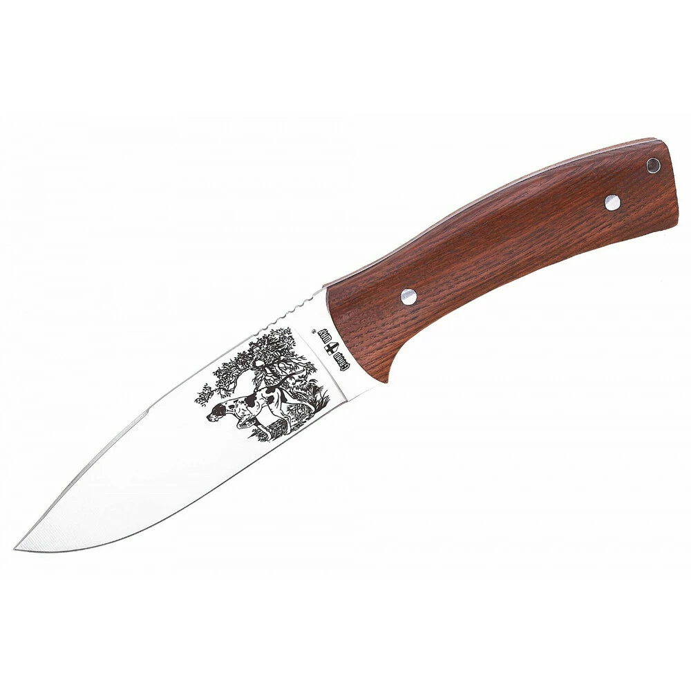 Кстати, если говорить о красоте, можно отметить, что дизайн у ножа крайне приятный глазу, клинок его сатинирован и несёт на себе красивый рисунок охотничьей тематики.