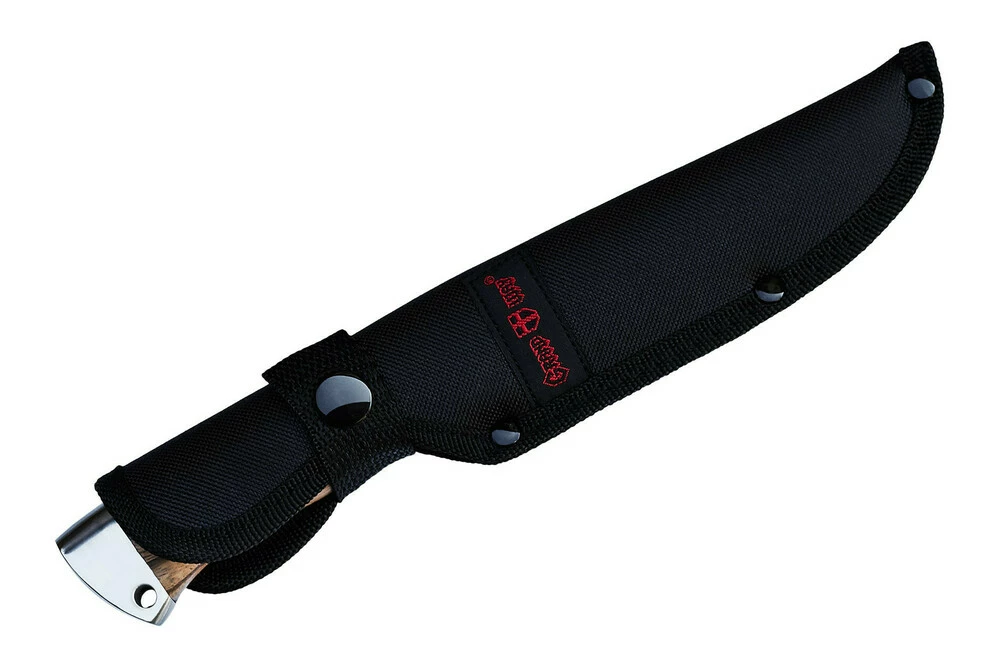 Все положительные качества этой древесины дополнены влагозащитной пропиткой, рукоять усилена стальным больстером и навершием. В комплекте с охотничьим ножом 2266 FWP идут удобные ножны из кордуры.