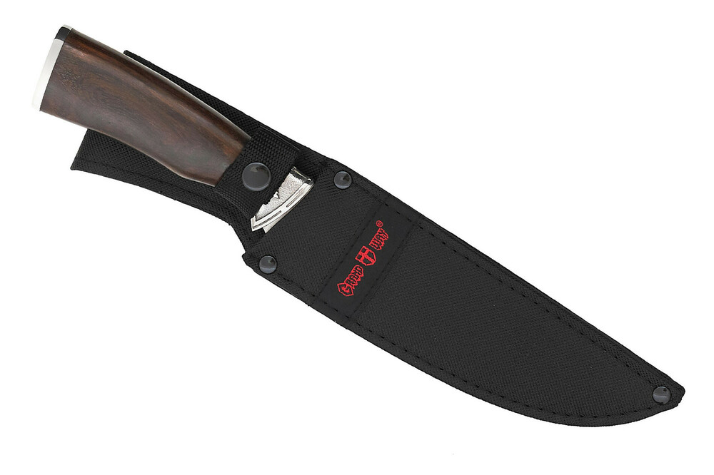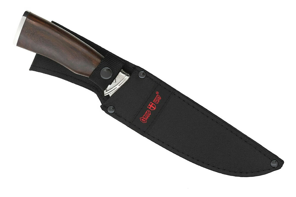 С ножом поставляются удобные и практичные тканевые ножны с нерегулируемой шлёвкой для подвески на пояс.