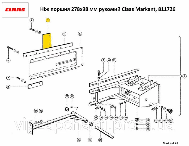 Ніж поршня 278х98 мм рухомий Claas Markant, 811726